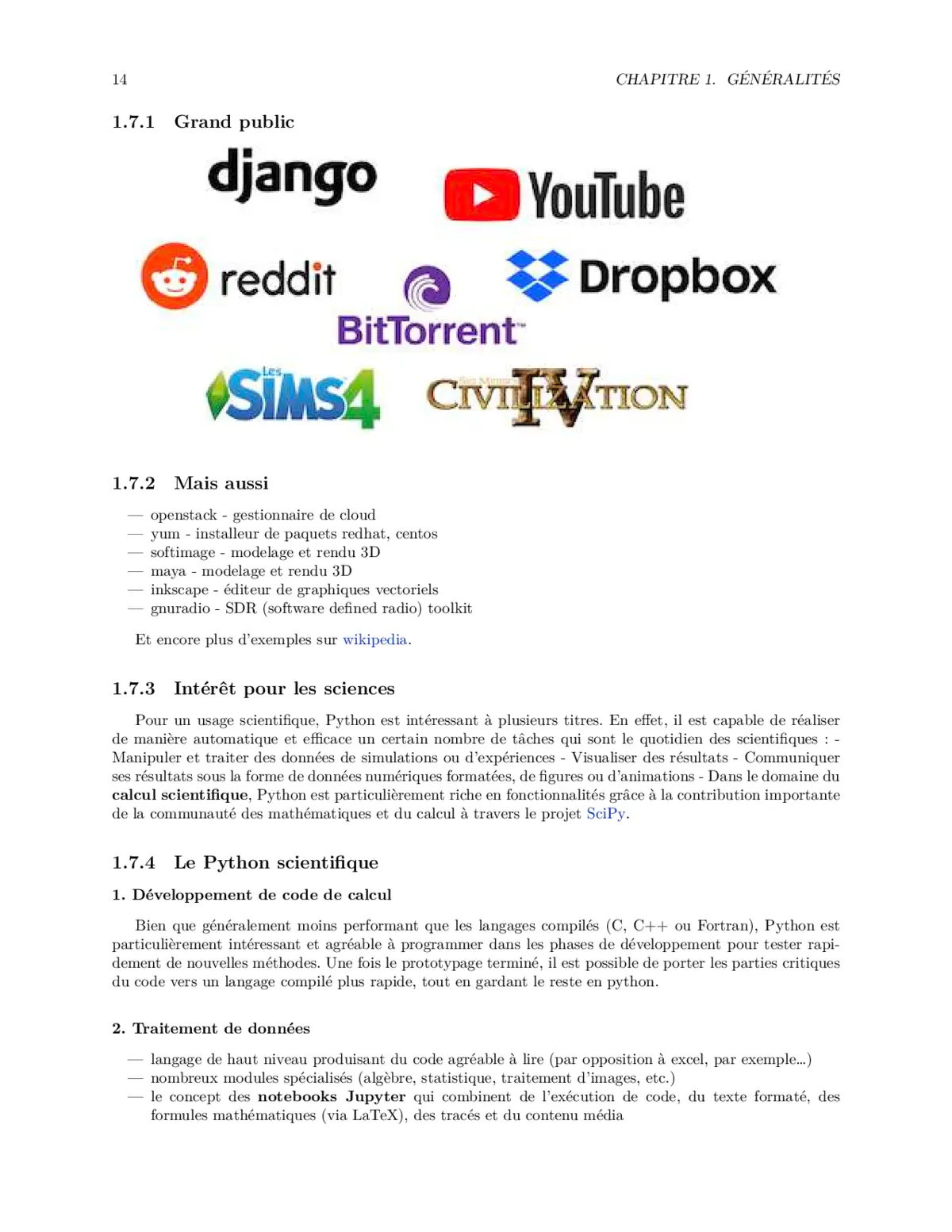 - Applications du langage Python : Études de cas et microprojets appliqués au domaine scientifique.