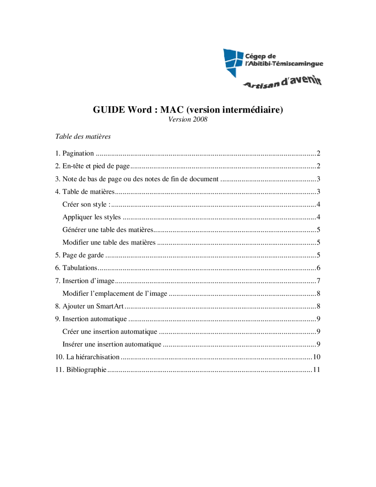 Comment créer une table des matières automatique dans Word 2008 ?