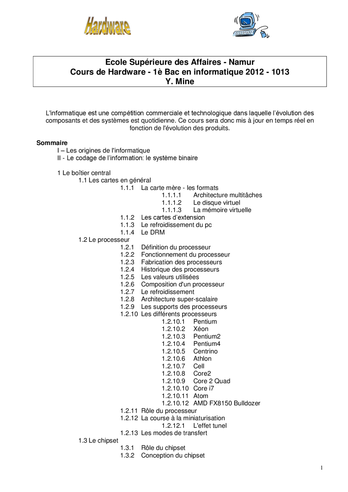 - Comprendre l'évolution historique et les principes de base du hardware