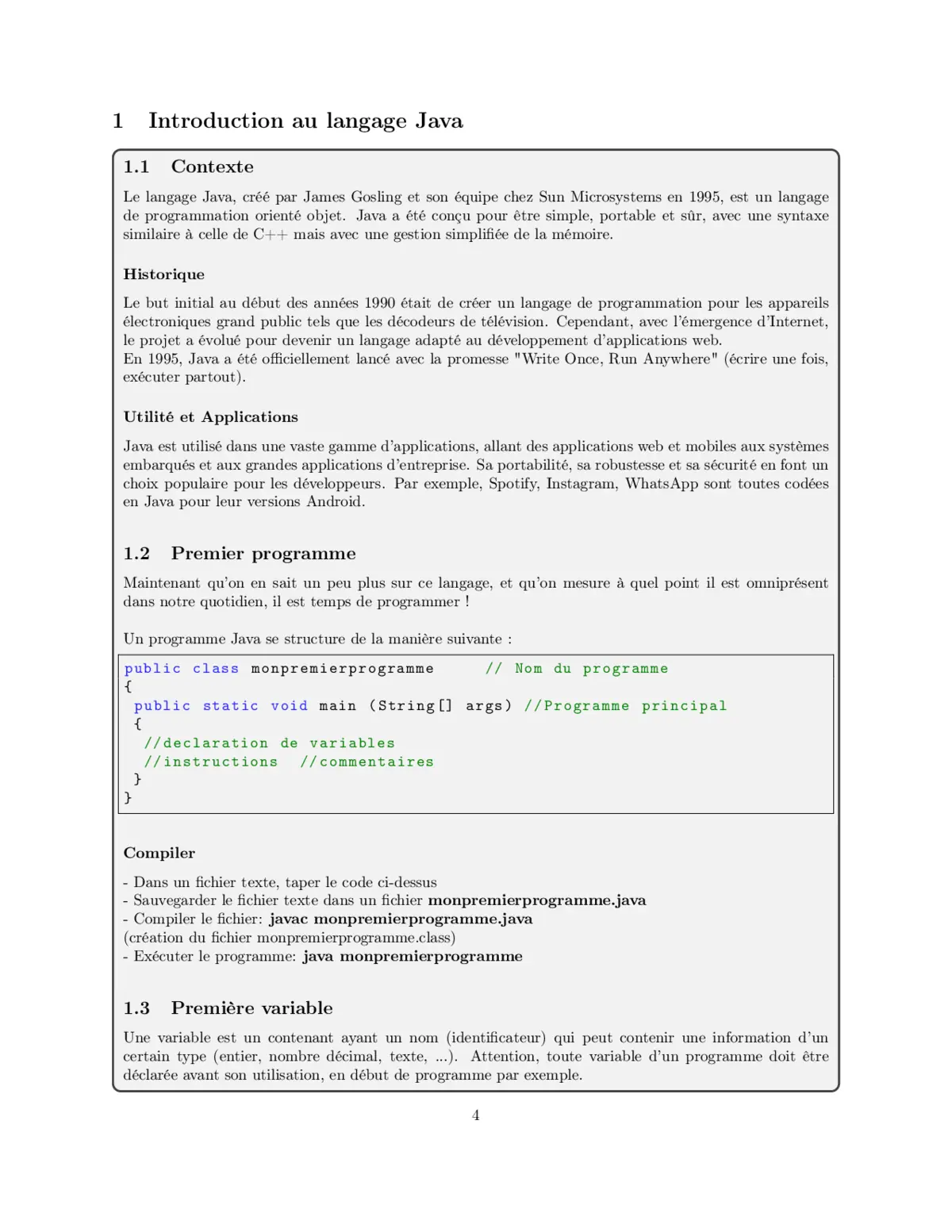 - Introduction au langage Java : Comprendre les fondements et l'historique de Java.