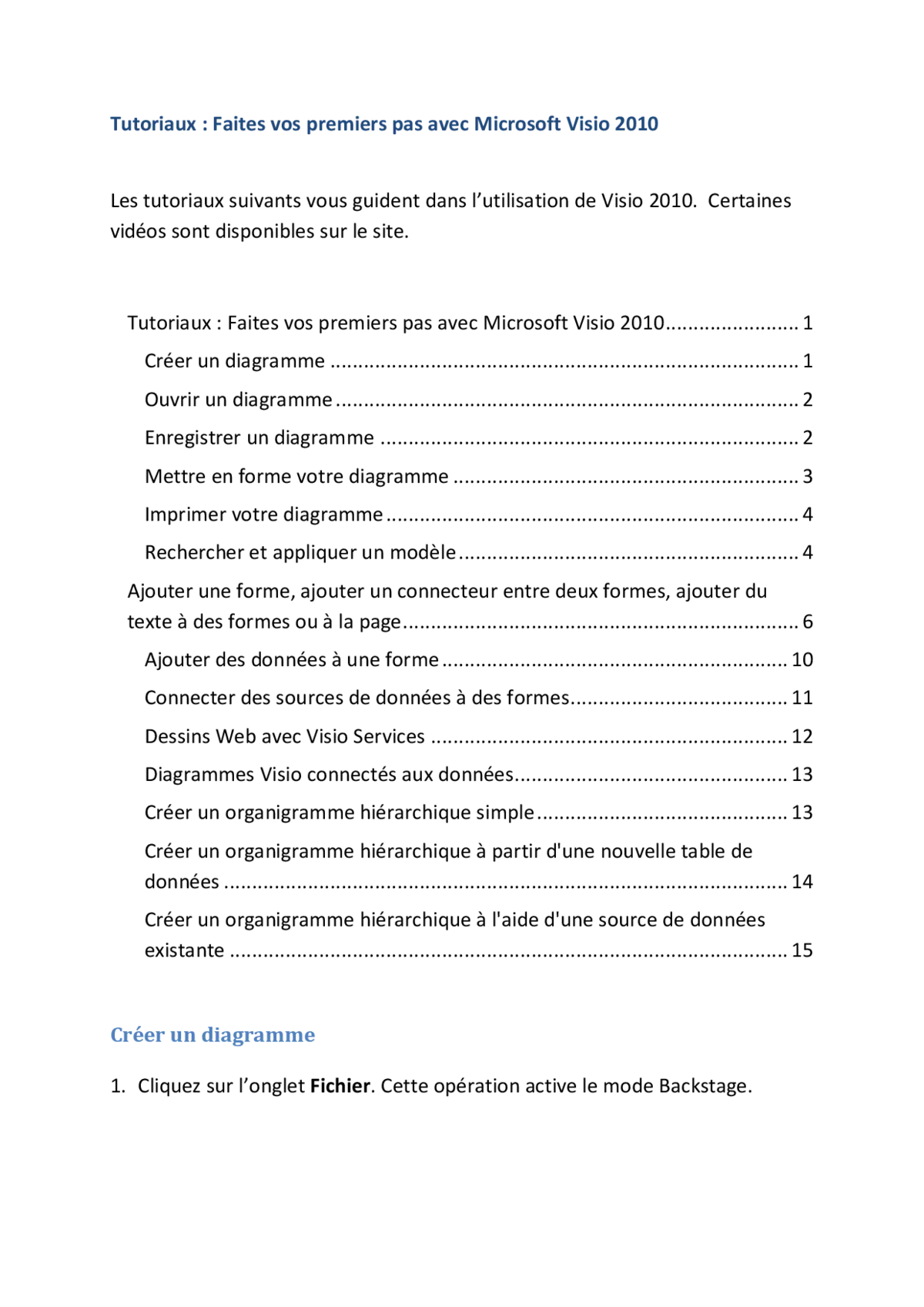 - Créer, ouvrir et enregistrer des diagrammes avec Visio 2010
