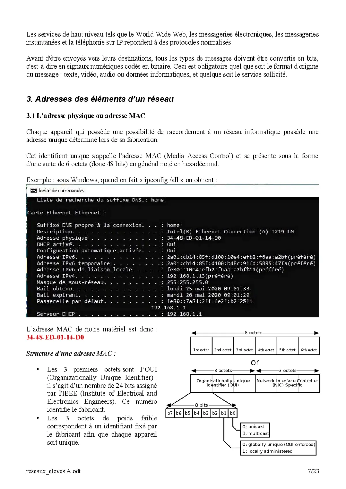 Réseaux et communications informatiques. Les réseaux et communications informatiques désignent l'ensemble des technologies et protocoles permettant l'échange de données entre ordinateurs et autres dispositifs. Réalisé par l'École La Mache Lyon, ce support s'appuie sur une pédagogie pratique et des exemples concrets adaptés aux programmes de terminale et aux premiers cursus techniques.
