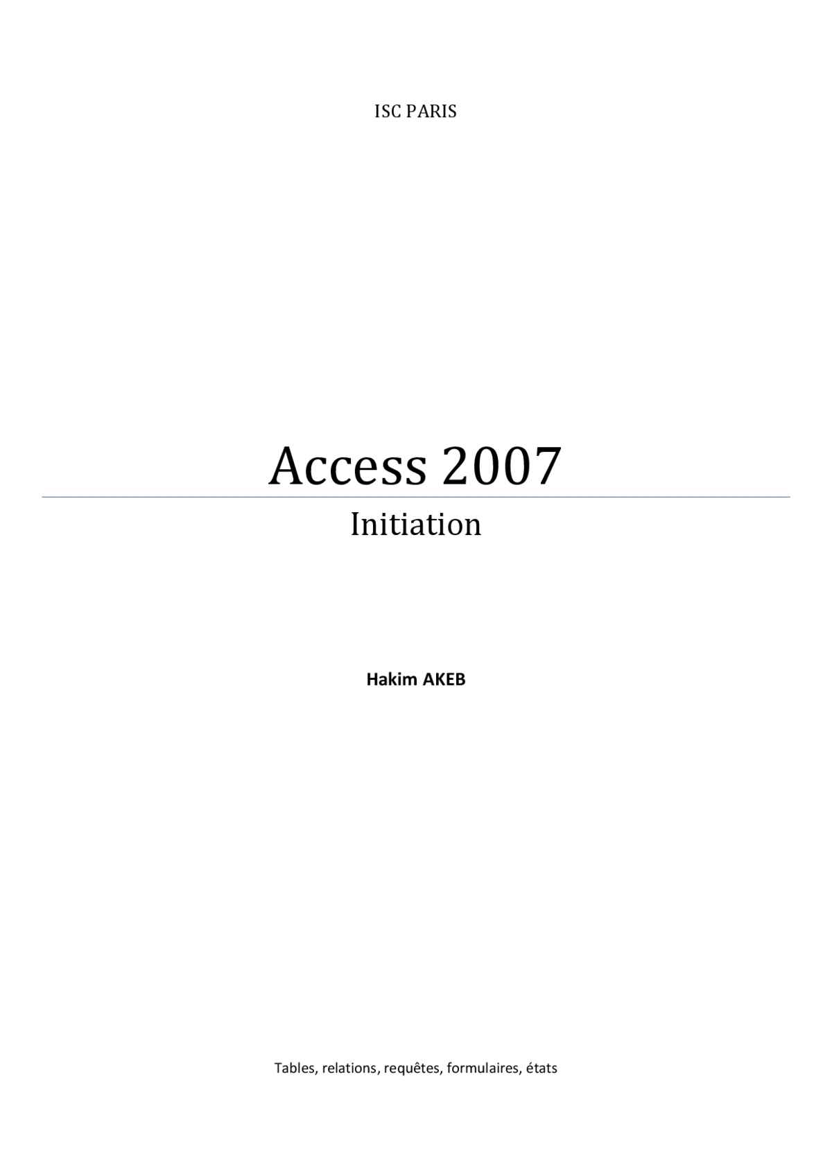 - Maîtriser les bases de la création et gestion de tables dans Access 2007.