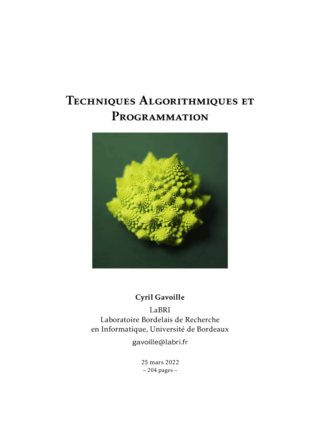 Techniques Algorithmiques et Programmation : téléchargez ce cours PDF gratuit de 204 pages, rédigé par Cyril Gavoille, pour acquérir les notions fondamentales en algorithmique et en programmation.