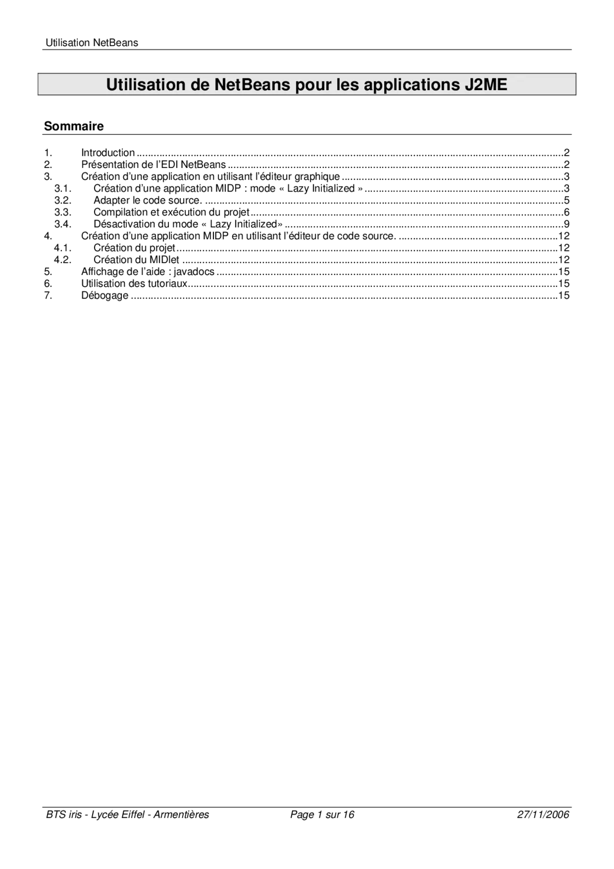 - Maîtriser l'interface et les fonctionnalités clés de NetBeans pour le développement J2ME.
