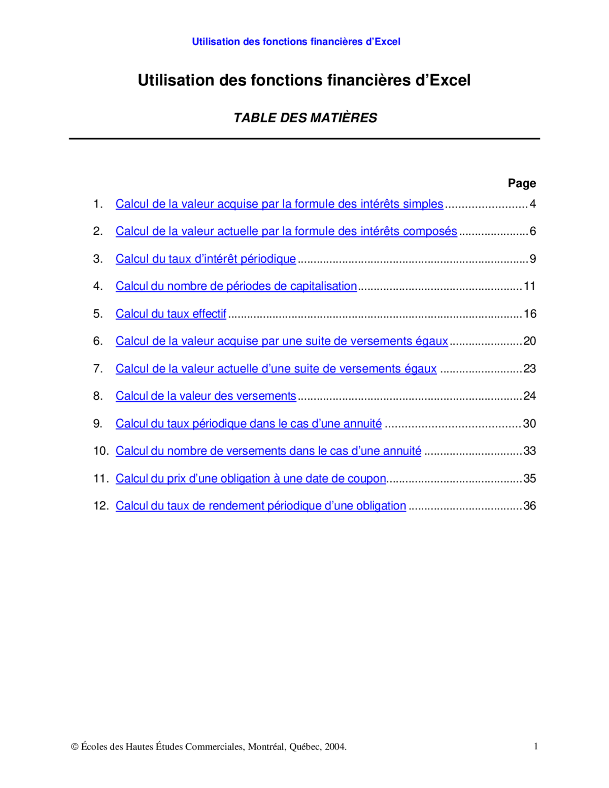 Ce cours approfondit les fonctions financières essentielles d'Excel pour des calculs précis en finance. Vous maîtriserez les concepts clés comme les intérêts simples/composés, les annuités et l'évaluation d'obligations. Les formules Excel (VPM, VA, TAUX, etc.) seront expliquées pas à pas avec des cas concrets pour automatiser vos analyses financières.
